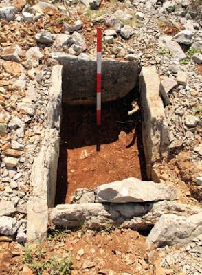 But this was not the only type of stone cist burials in Montenegro at that time. The above type of burial in massive stone cists under earth tumuluses was used in the valleys and fertile lowlands. In the mountainous regions of Montenegro a more typical seems to have been burial in massive stone cists placed in the centers of artificial stone hills (cairns) which were surrounded with stone rings (curbs).