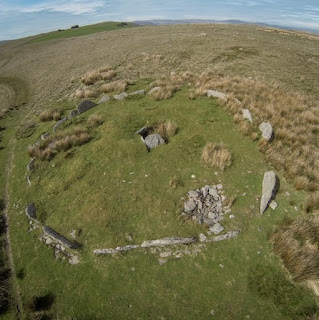 This is Carn Llechart, one of the largest curbed stone cairns, or ring cairns in Wales.